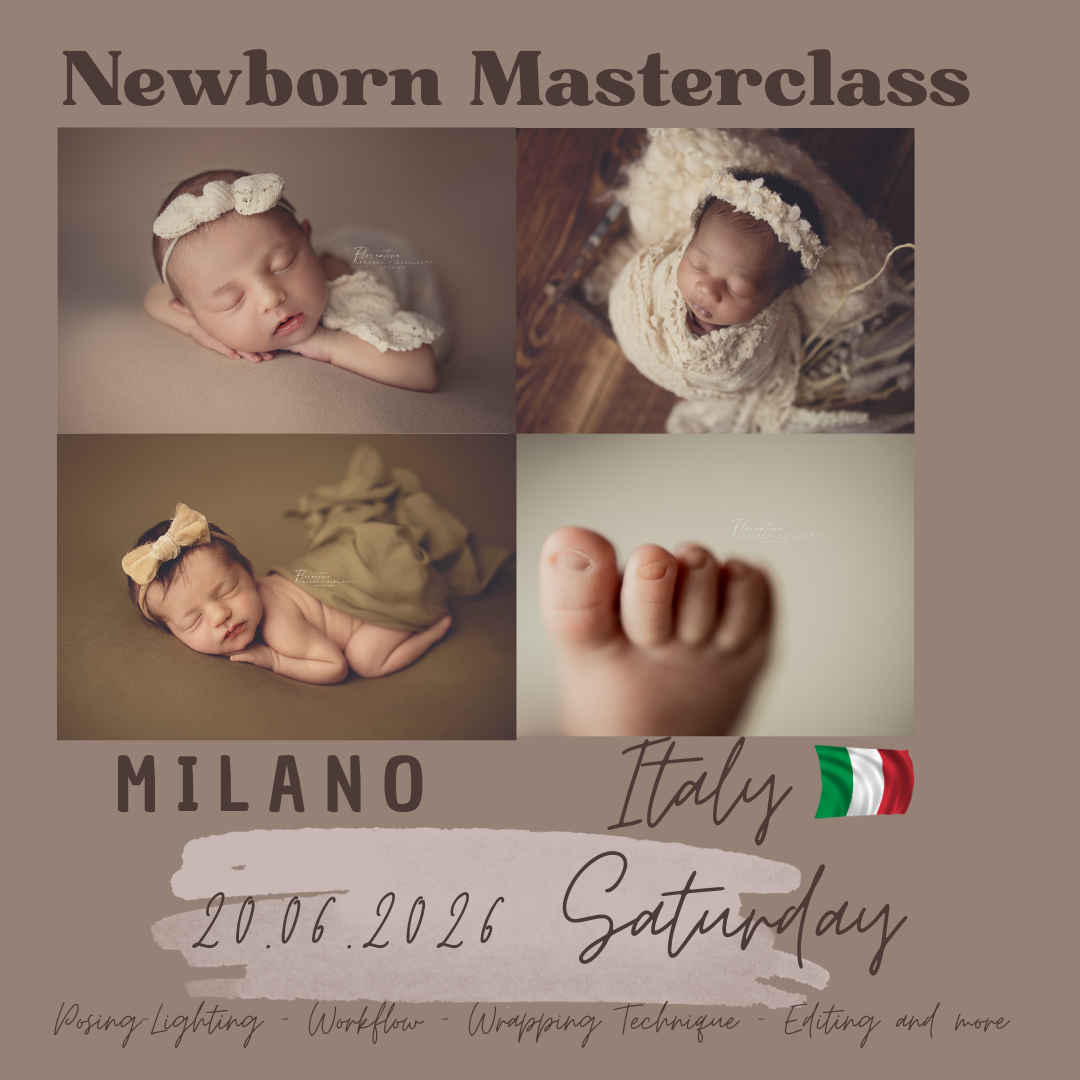 Il workshop inizia la mattina presto alle 8.30 e termina alle 18.00. È un’intera giornata e copre tutto ciò che dovete sapere sulla fotografia neonatale, sia che siate fotografi principianti o avanzati. Vi insegnerò tutto sul flusso di lavoro, la posa sul bean bag e gli oggetti di scena, le angolazioni, l’illuminazione, le tecniche di fasciatura, lo styling e l’editing.